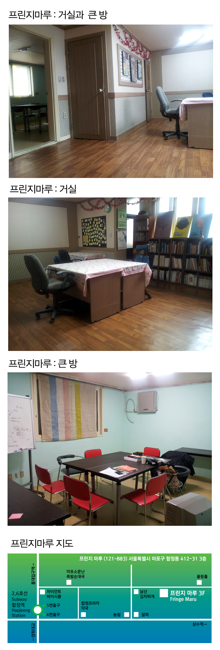 ■ 주소 : 서울시 마포구 합정동 412-31 3층 서울프린지네트워크 (담당 : 김혜연)