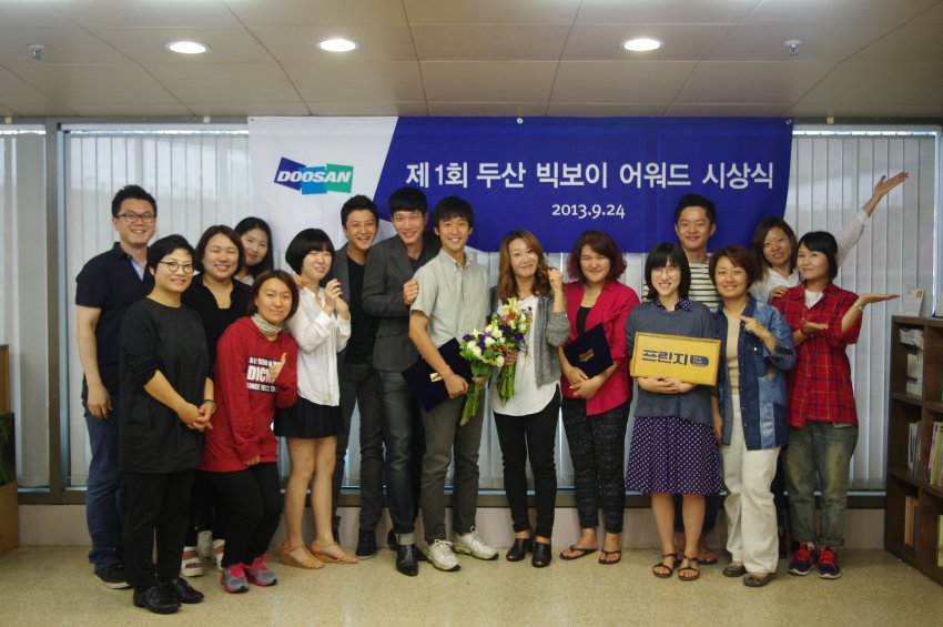 제 1회 두산 빅보이어워드 시상식이 지난 9월 24일, 두산아트센터 관계자와 서울프린지네트워크 사무국 스텝, 그리고 빅보이 어워드에 당선된 두 팀이 모여 서울프린지네트워크 사무실에서 진행되었습니다.