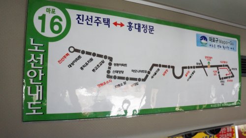 <마포 16번>버스를 타고 <홍익유치원> 정거장으로 이동합니다.