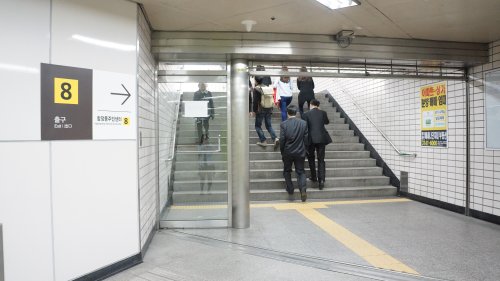<합정역 8번 출구>로 나오시면 이런 풍경이 보입니다. 직진해주세요.