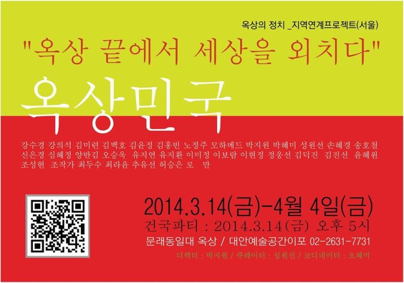 서울에서는 이포가, 옥상민국 "옥상끝에서 세상을 외치다"라는 제목으로 전시기획을 하였는데, 어느 도시보다 많은 36명의 작가가 참여하였습니다.