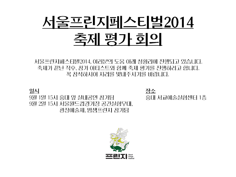 [서울프린지페스티벌2014] 축제 평가 일정 안내