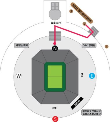 - 인터뷰 모임 장소 : 월드컵경기장역 2번출구에서 올라와 경기장으로 향하는 북측계단 위