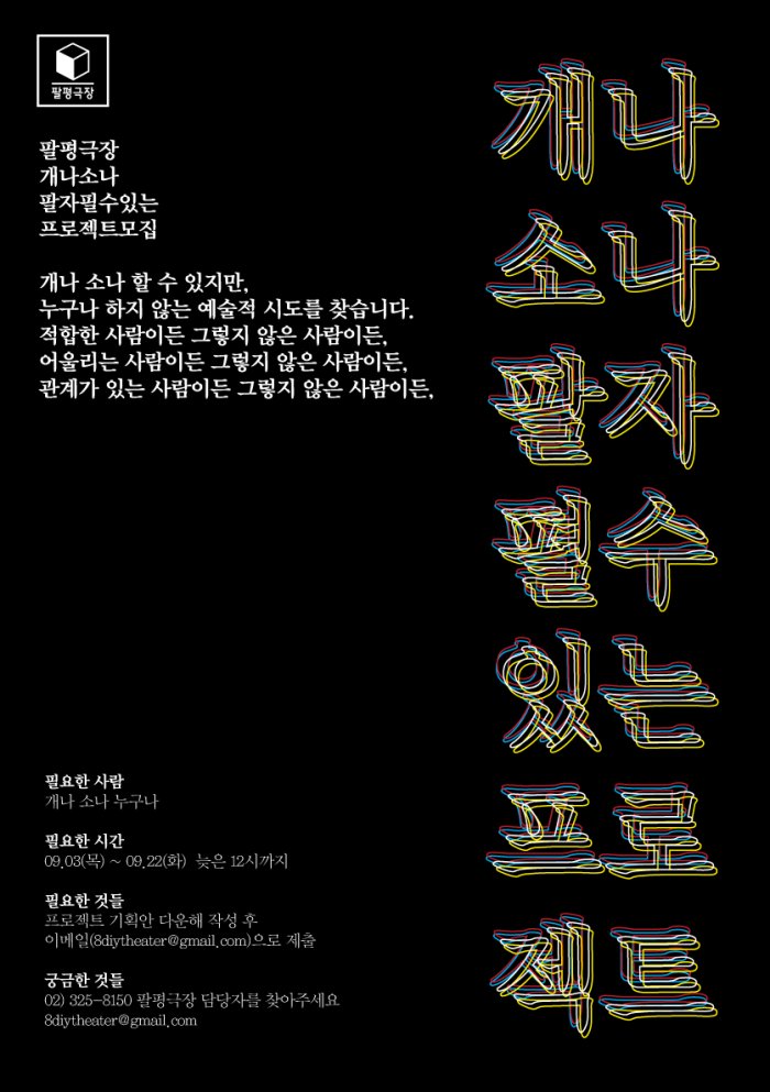 >>필요한 것들 : 프로젝트 기획안을 다운해 작성 후 이메일(8diytheater@gmail.com)으로 제출