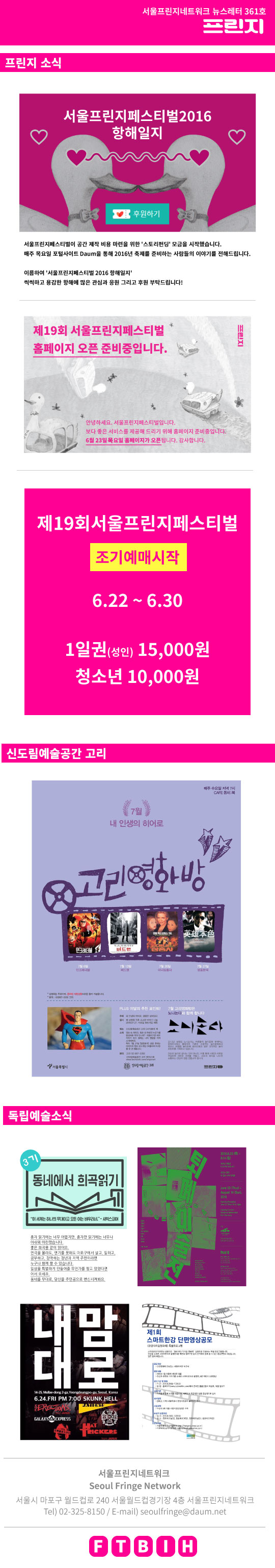 [361호] 제19회서울프린지페스티벌 조기예매 시작!!