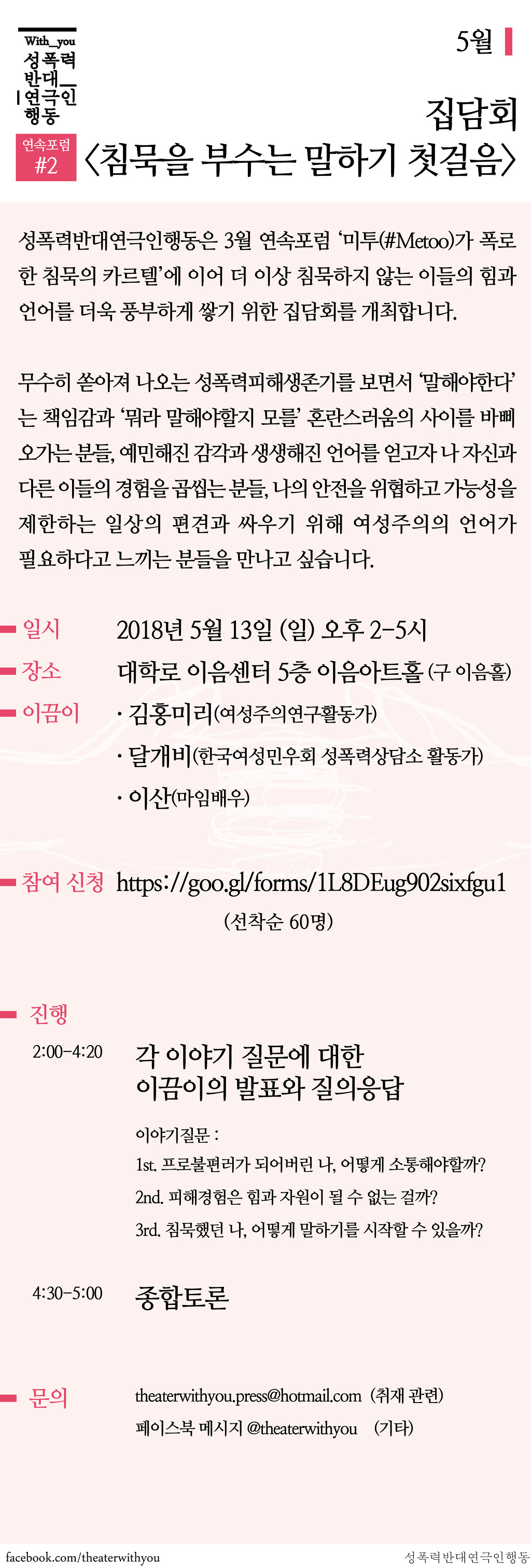 2018 성폭력반대연극인행동_#연속포럼 5월 집담회 <침묵을 부수는 말하기 첫걸음>