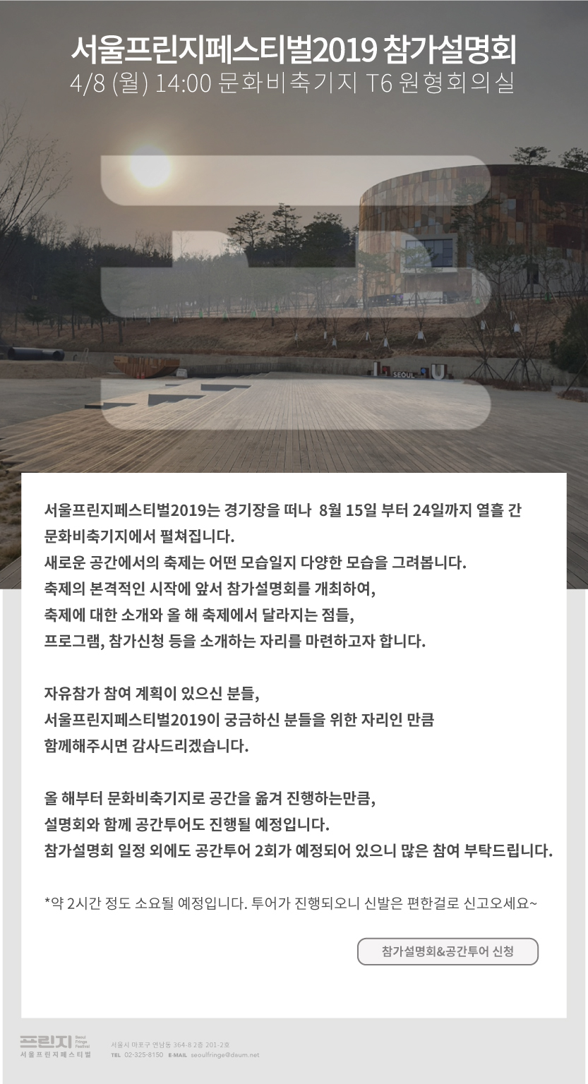 [서울프린지페스티벌2019] 프린지 아티스트 참가설명회&공간투어를 진행합니다!!