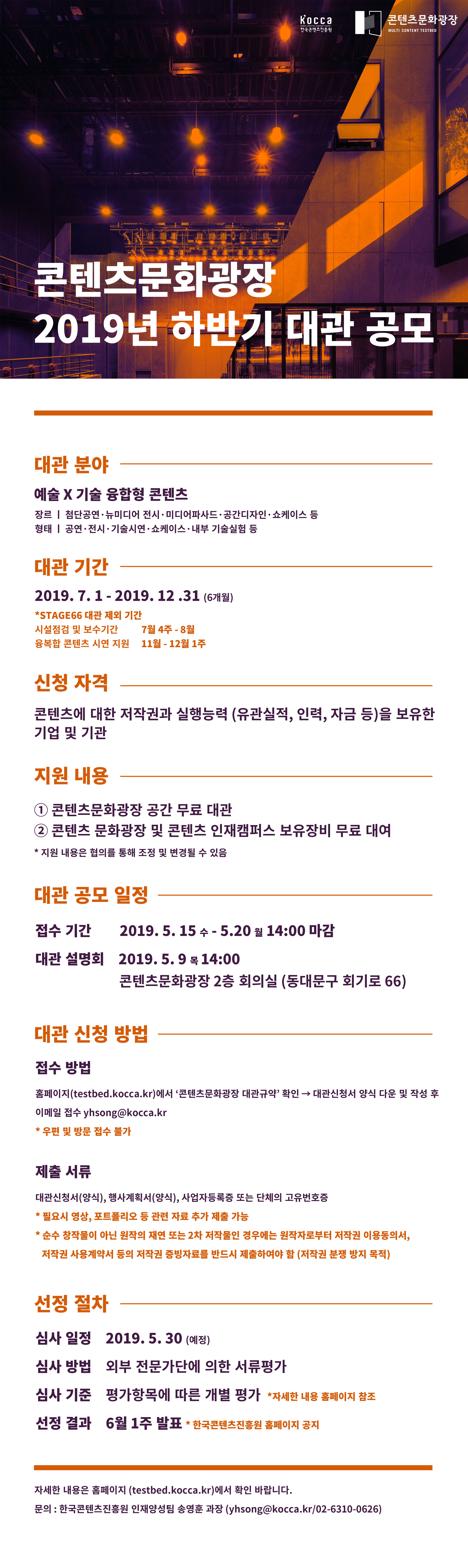[KOCCA] 콘텐츠문화광장 2019 하반기 대관 공모 안내