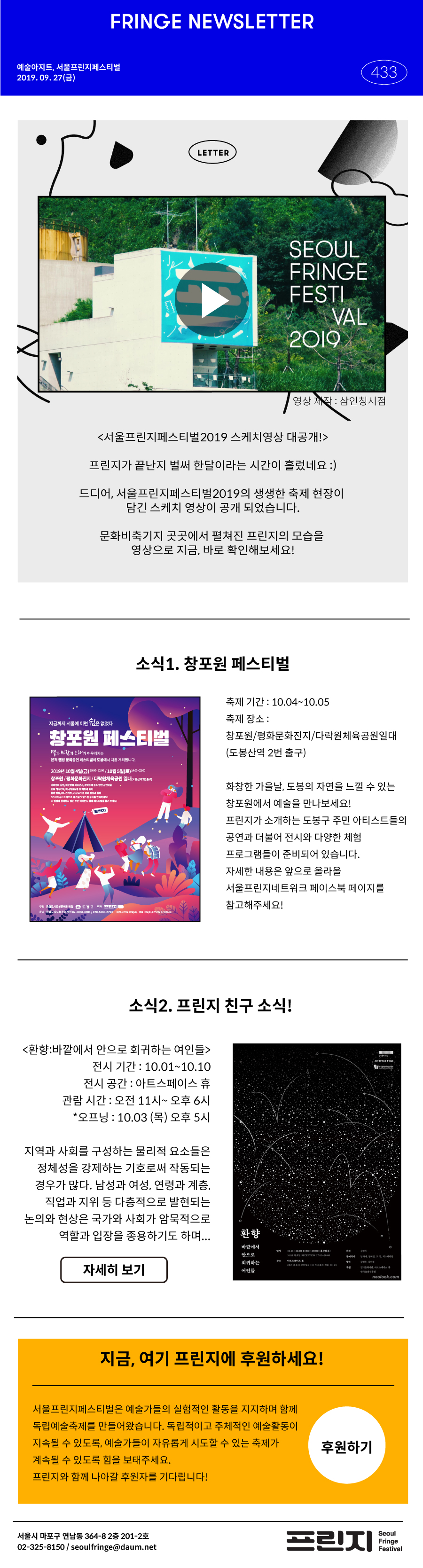 [프린지433호]#서울프린지페스티벌2019 #스케치영상 #대공개