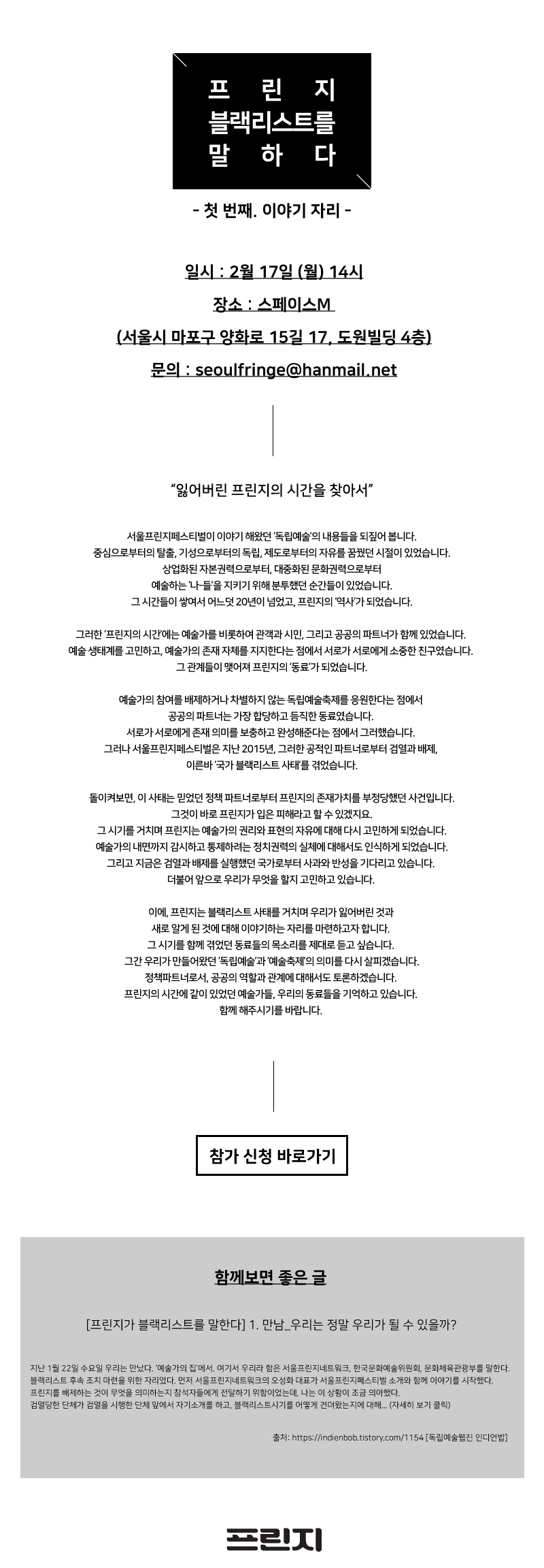 <프린지 블랙리스트를 말하다> 첫 번째. 이야기 자리