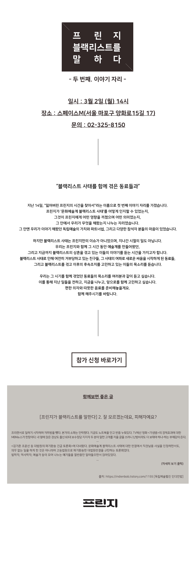 <프린지 블랙리스트를 말하다> 두 번째. 이야기 자리