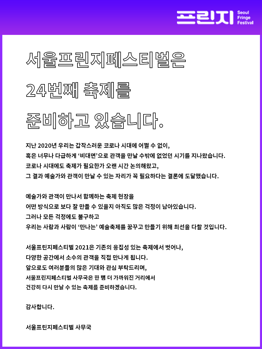 [프린지특별호] 어느덧 24번째, 서울프린지페스티벌의 시작을 알립니다! #서울프린지페스티벌2021