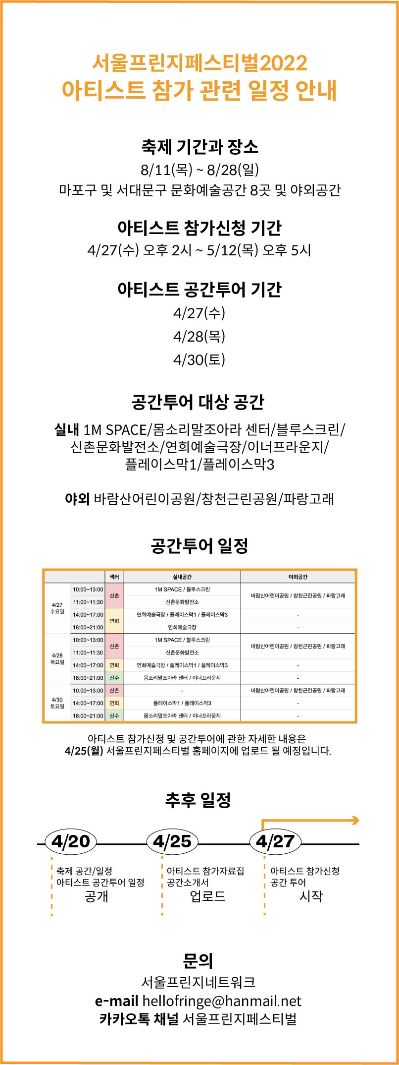 [서울프린지페스티벌2022] 아티스트 참가 관련 일정 안내