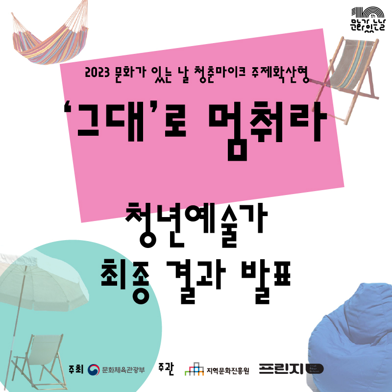 2023 문화가 있는 날 청춘마이크 '그대'로 멈춰라 청년예술가 최종 결과 발표.