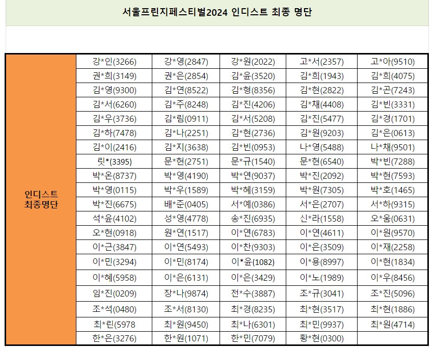 [서울프린지페스티벌2024] 인디스트 최종명단 및 오리엔테이션 안내