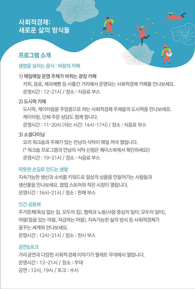 사회적 경제 종사자들의 활동을 격려 및 네트워크를 강화하기 위한 행사입니다.
