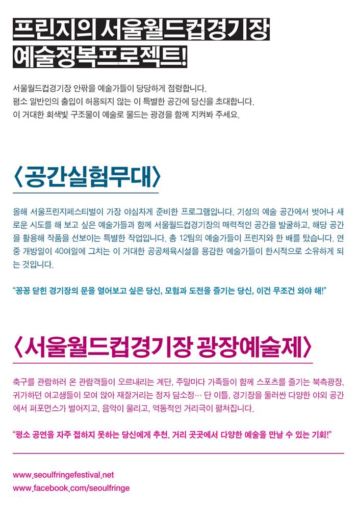 2014 서울월드컵경기장 예술정복프로젝트 <공간실험무대>와 <광장예술제>