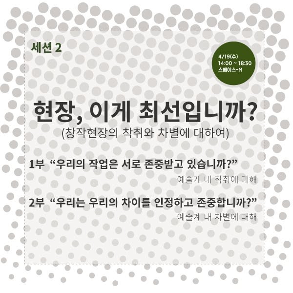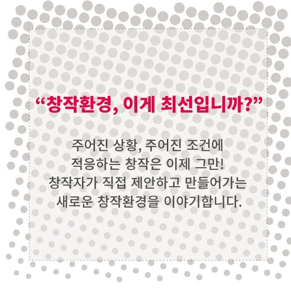 ‘더 나은 창작환경을 위한 제도, 현장, 질문과 상상’이라는 주제를 잡게 되었습니다.